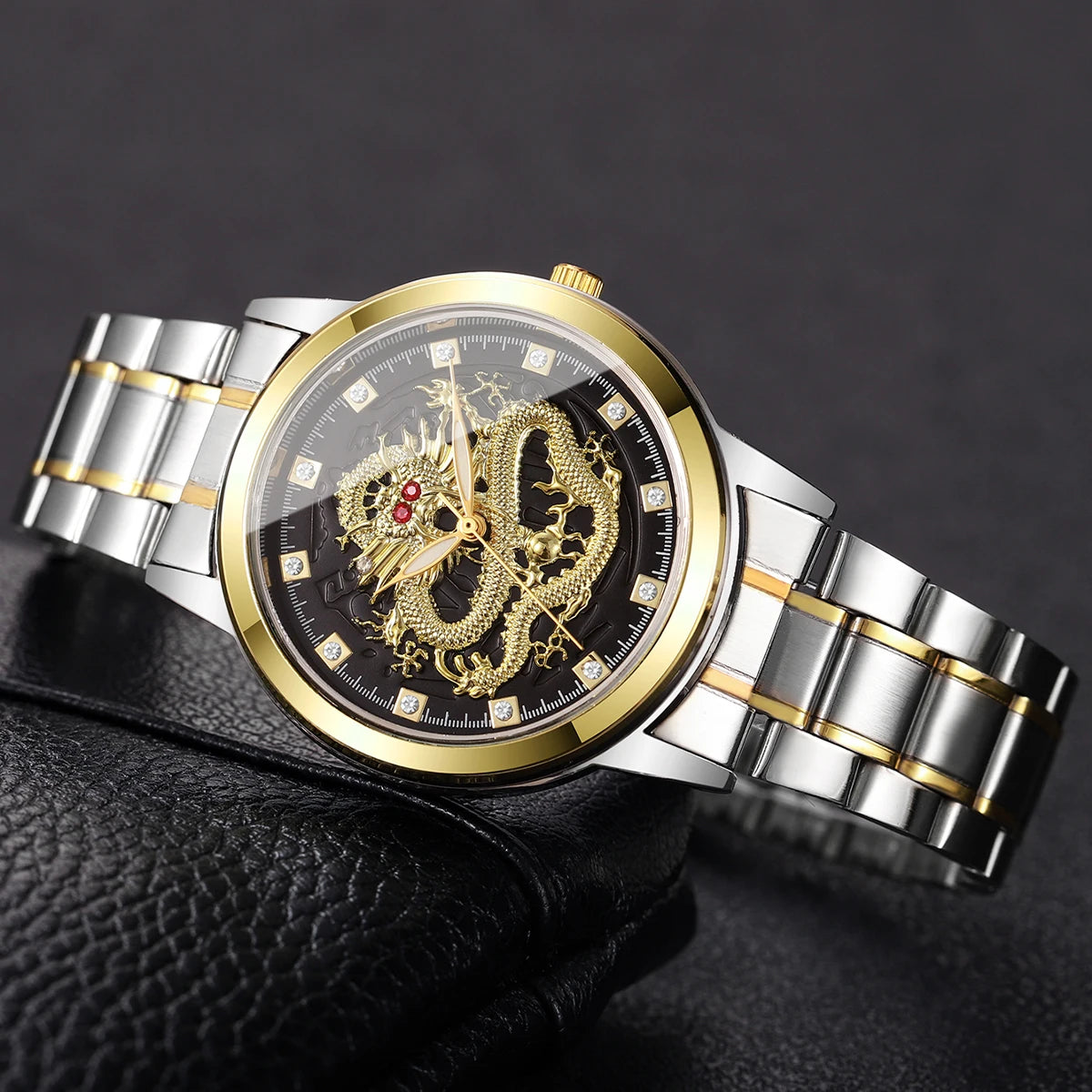 Command attention with the Monari Dragon Essential, a timepiece that fuses mythic artistry with modern reliability. At its heart is a high-accuracy quartz movement, delivering consistent, precise timekeeping with effortless ease — perfect for everyday wear or elevated occasions. The dial features an intricately sculpted dragon motif, symbolising strength, wisdom, and prosperity. Every scale, curve, and contour is crafted with meticulous detail, creating a dynamic centerpiece that reflects light and draws the eye.